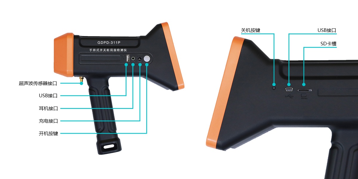 手持式開關柜局放檢測儀用于檢測和測量開關柜中的瞬時接地電壓放電和表面 放電,并在液晶屏上實時顯示放電波形和放電量。該儀器采用手槍便攜式設計, 可以直接在開關柜外殼掃描檢測,對開關柜的運行不產生任何影響和無任何損 害,同時對測量的信號進行
