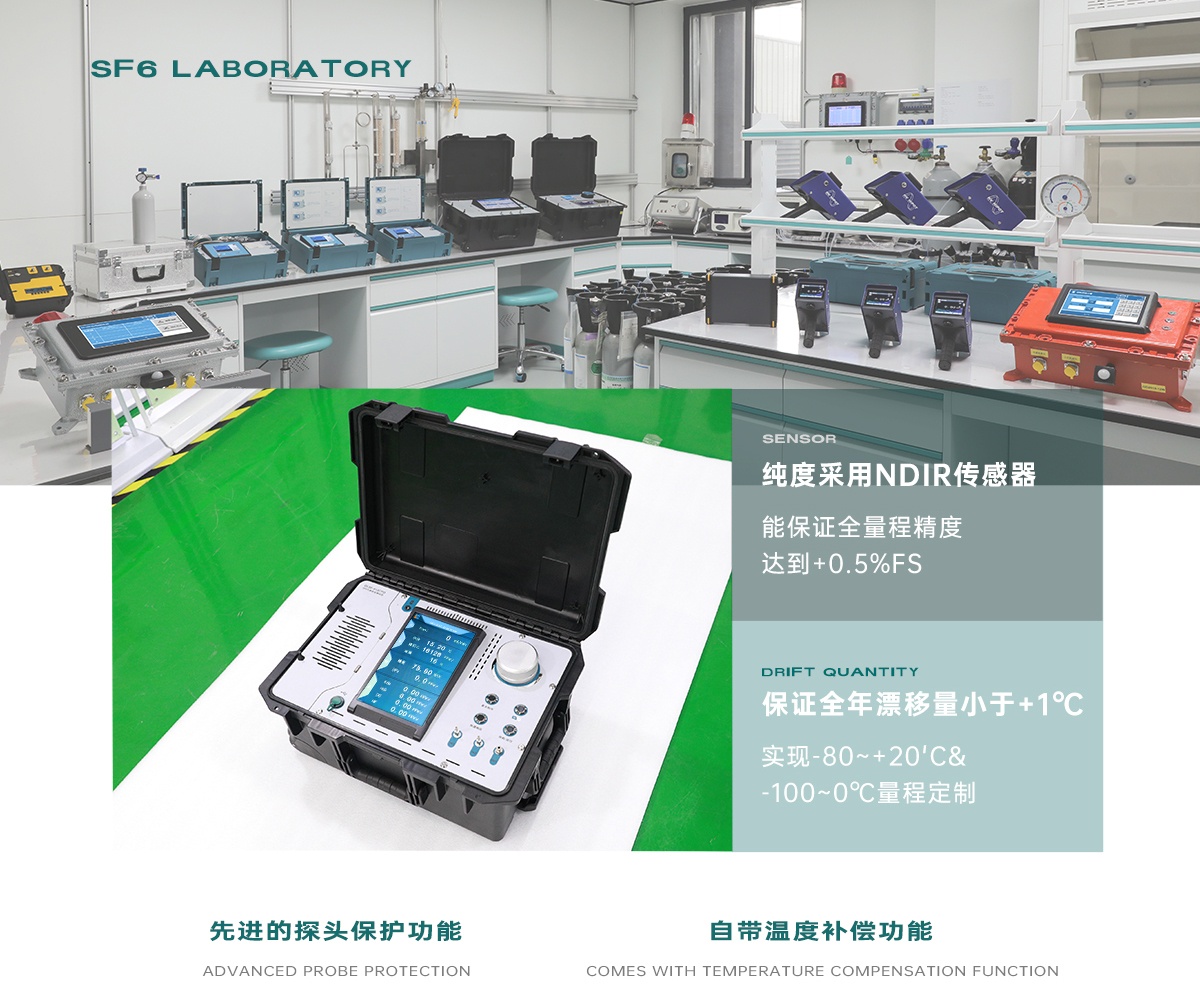GDSF-411PPD? SF6氣體綜合分析儀是集SF6濕度、SF6純度測(cè)試以及SF6氣體分解物測(cè)試于一體,一次現(xiàn)場(chǎng)測(cè)量,即可完成所有指標(biāo)檢測(cè),大大節(jié)省了設(shè)備中的氣體,同時(shí)減少用戶的工作量,提高了工作效率。GDSF-411PPD? SF6氣體綜合分析儀采用了國(guó)外最優(yōu)秀的傳感器;濕度采用穩(wěn)定并且可靠的瑞士冷鏡模組、純度采用德國(guó)Smart-GAS NDIR原理傳感器,分解物測(cè)試采用瑞士曼巴波傳感器。彩色液晶顯示,實(shí)時(shí)顯示各種參數(shù),全程傻瓜式的操作,內(nèi)置充電電池,交直流兩用。