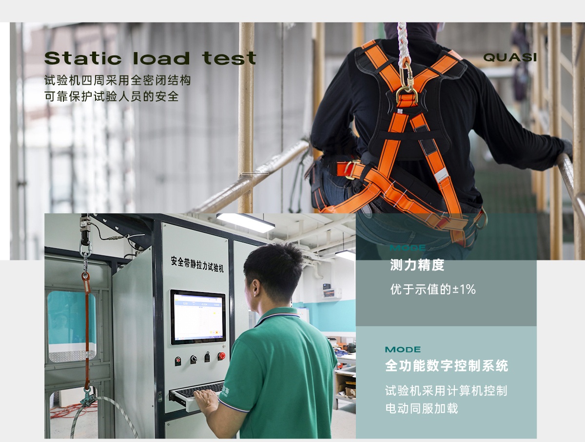 安全帶靜載試驗機適用于多種個體防護裝備及配件的靜載荷試驗。如:墜落懸掛安全帶、圍桿作業(yè)安全帶、區(qū)域限制安全帶、安全繩、連接器、剛性導(dǎo)軌自鎖器、柔性導(dǎo)軌自鎖器等。試驗機采用計算機控制,電動伺服加載,全功能數(shù)字控制系統(tǒng),具有負荷、位移雙閉環(huán)控制功能。試驗機四周采用全密閉結(jié)構(gòu),可靠保護試驗人員的安全。具有加載平穩(wěn),控制精準高,低噪音,試驗效率高的特點。