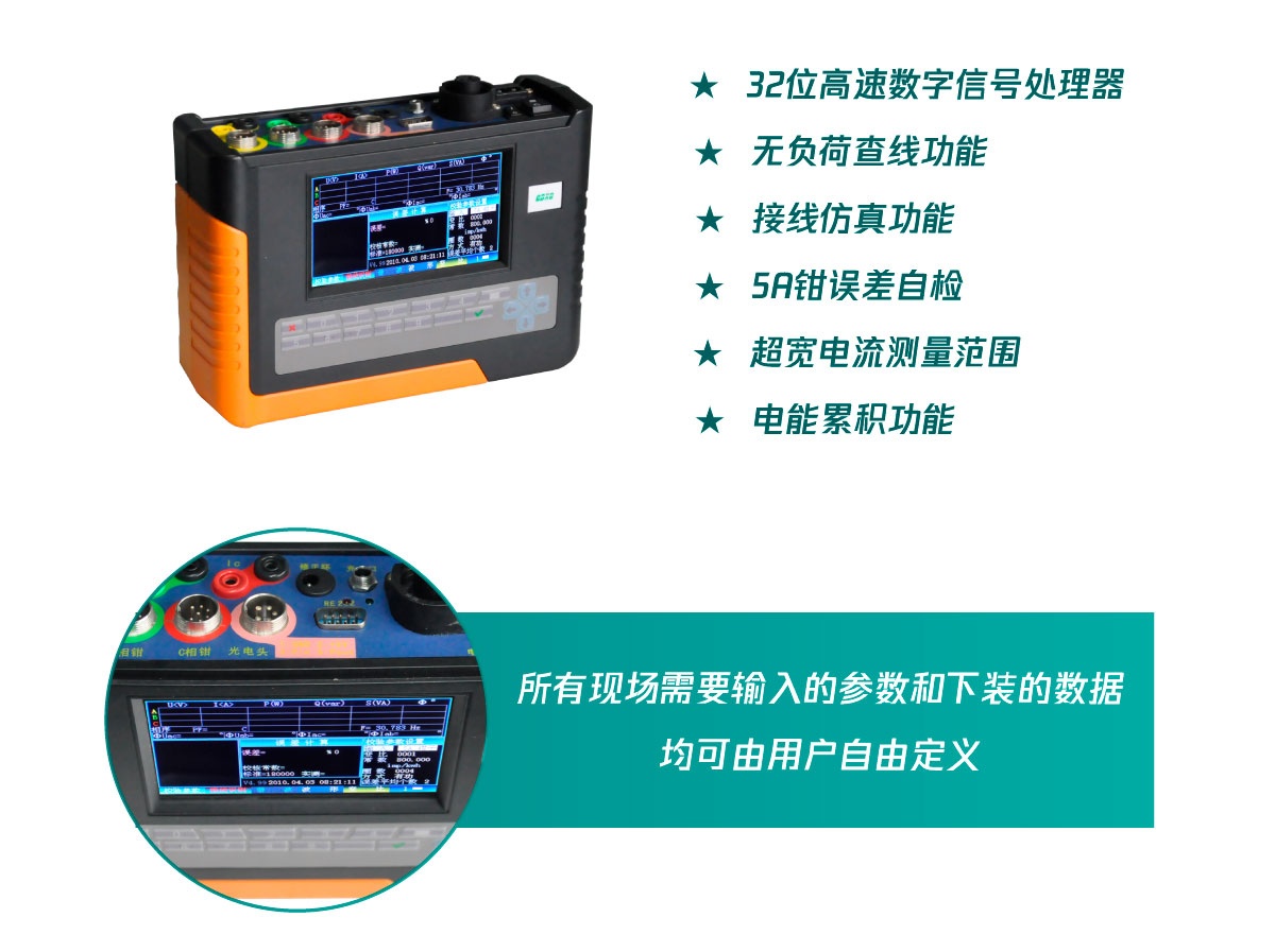 - 同時測量電能誤差、電壓、電流、有功功率、無功功率、相位、頻率、