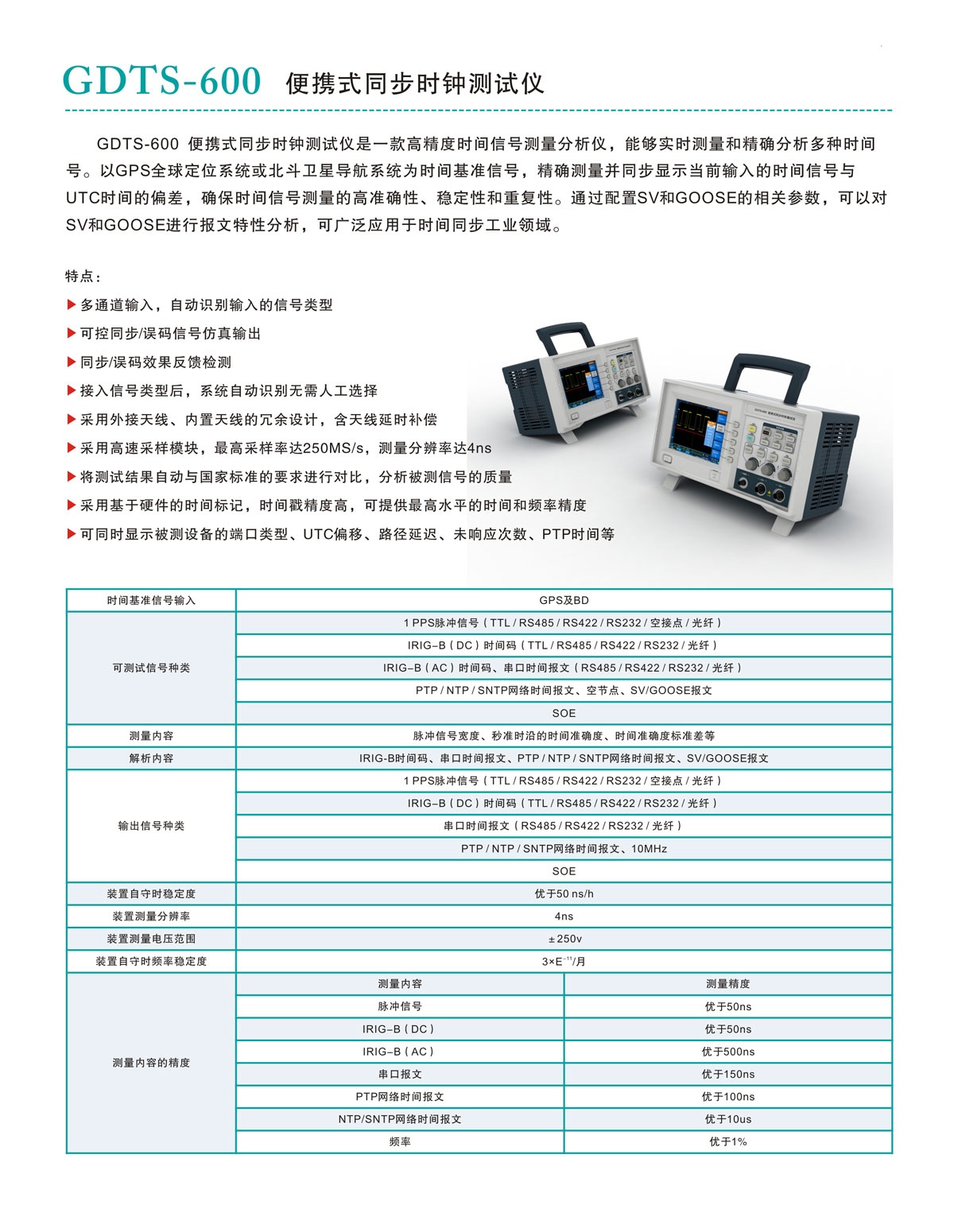 - 內置高精度銣鐘,保證連續長時間自守時狀態的測試精度