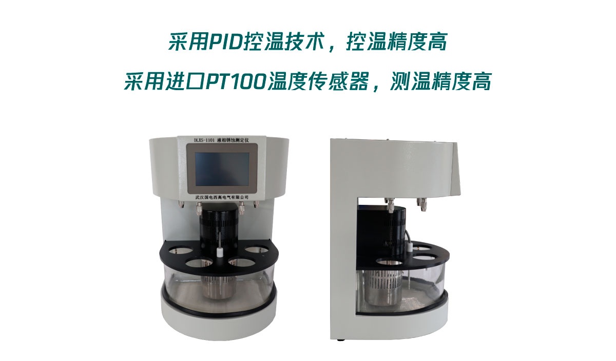 測試原理是將300ml試樣和30ml蒸餾水或合成海水混合,把圓柱形的試驗(yàn)鋼棒全部浸在其中,在60℃下進(jìn)行攪拌。通常試驗(yàn)周期為24小時,但是根據(jù)合同雙方的要求,亦可長可短。試驗(yàn)周期結(jié)束后,鋼棒銹蝕的痕跡和銹蝕的程度。