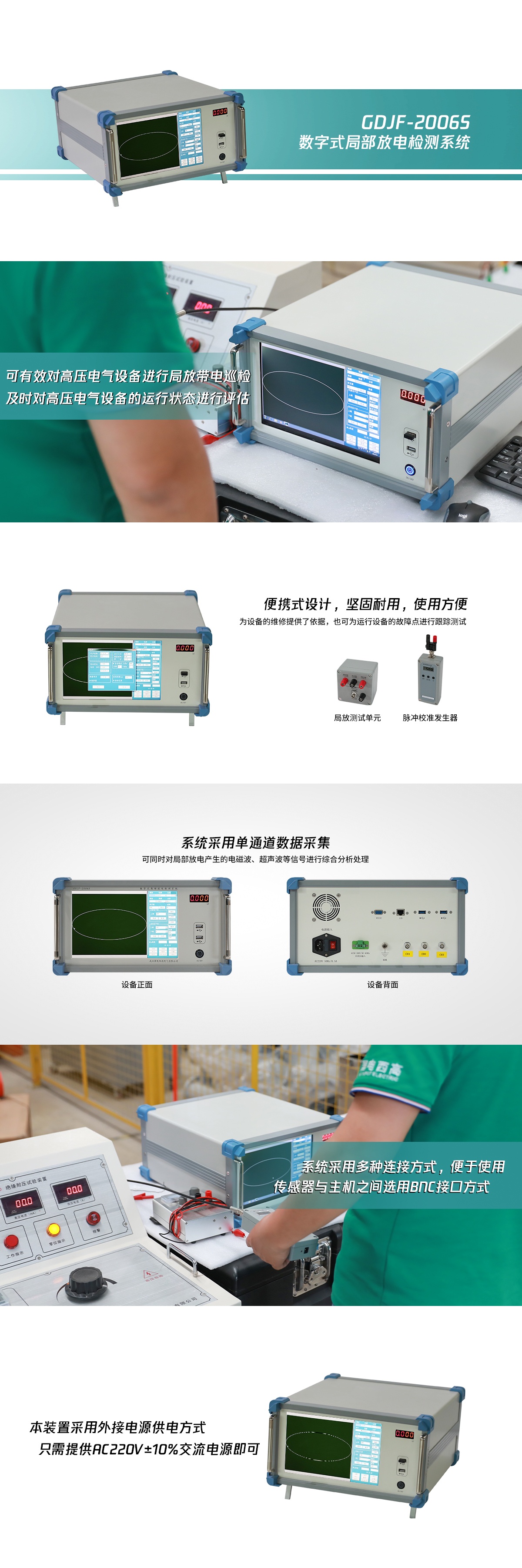 具備對(duì)運(yùn)行中的高壓電氣設(shè)備進(jìn)行局放帶電巡檢的功能,適用于柱上開(kāi)關(guān)、互感器、干式變壓器、油浸式變壓器、高壓斷路器、耦合電容器、電抗器、電容套管、高壓開(kāi)關(guān)等試品進(jìn)行局部放電實(shí)驗(yàn)及其他科學(xué)實(shí)驗(yàn)研究。