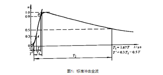 全波是具有一定極性的非周期性脈沖電壓波,其波前部分的電壓上升很快,到達峰值后再緩慢地降到零,如圖1所示。