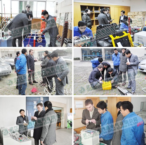 第二天, 客戶對我公司的各種常規電力監測試驗進行了現場實地考察,包括:超低頻,交流耐壓,直流耐壓,電纜故障,直流電阻,絕緣油測試,變比組別,真空度測試儀,回路電阻,高壓開關,繼電保保護測試絕緣手套靴,氧化鋅避雷器等試驗,并對每種試驗提出了很多專業問題,我公司領導通過現場演算對其給予解答。通過與我公司工程師的溝通,俄羅斯客戶更是提出了希望將來能共同研發出領先國內技術要求的產品,并以此為基礎大力開拓俄中兩國的市場。
