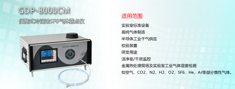 通常是在氣體流經的測定室中安裝鏡面及其附件,通過測定在單位時間內離開和返回鏡面的水分子數達到動態平衡時的鏡面溫度來確定氣體的露點。儀器通過光學系統,測溫電路,邏輯控制電路、數字顯示電路等,測量露點溫度Td,并顯示出來。一般常見試驗設備為GDP-8000CM便攜式冷鏡法SF6氣體露點儀。該儀器采用自動冷鏡測量 (斯特林制冷原理)的測量方法,可以在環境溫度高達60℃的各種環境下,以露點±0.2℃的測量精度進行SF6氣體的微量水分檢測。