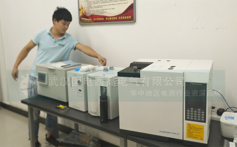 色譜分析儀開機后,對其操作流程(控溫、點火、加橋流)以及后續電腦上標氣 ID表的建立等內容逐一講解,然后做油樣的取樣、震蕩、轉移、進樣等試驗。油樣試驗結果依據H2/C2H2/總烴結合國家標準要求都低于注意值,測試油樣合格。